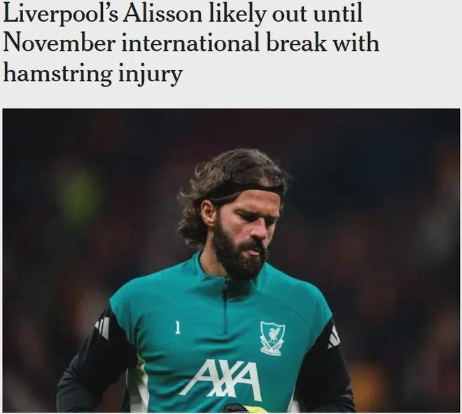 TA记者发表了说,利物浦守门员艾莉森(Alison)对腿筋造成了伤害,直到11月国际党之后才能返回。 33 -year -old ali
