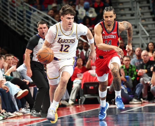北京时间11月15日,湖人队以118-104战胜鹈鹕队,避免了连败。这场比赛也可以算是湖人队的一场复苏比赛。上一场比赛,西部领头羊雷霆惨败。本场比赛对阵西部垫底的鹈鹕队。湖人肯定不会屈服,但西部垫底的鹈鹕也没有放下武器。一度落后22分,但第四节他们拼命追分。最终湖人队获胜。首场对阵雷霆队的比赛中,东契奇和里维斯两位主力的表现都非常糟糕。东契奇出战32分钟,得到19分7篮板7助攻4失误,三分球20投7中,三分球7投1中。里维斯出战30分钟,12投4中,得到13分5篮板3助攻1篮板1失误5次失误。两支球队的表现都不错低于赛季平均水平,使得对阵鹈鹕的比赛成为一场反弹的比赛。东契奇首节3投3中,但罚球7中6得到6分2篮板4助攻。第二节东契奇大放异彩,5投4中+三分球4中3+罚球4中3,砍下14分5助攻1篮板。仅上半场东契奇就已经得到20分和9次助攻。艾顿处于边缘。上半场他8投7中,得到14分11篮板1助攻。艾顿半场打出两双。里维斯本场比赛也表现出色。首节3投2中、三分球2中1、罚球5中4拿下9分2助攻。第二节,他5投1中得到2分和1次助攻。里维斯上半场也独得两位数。这意味着湖人队上半场已经有三名球员得分上双。湖人队也鹈鹕队大比分领先。鹈鹕队的其他球员完全依靠墨菲来支持。墨菲上半场就拿下21分。第四节开始,鹈鹕队以13-1.5领先,陷入疯狂追击。里维斯多次犯规,让湖人队保持领先优势。在第三节5中1后,东契奇终于在第四节完成了运动战。进入最后时刻,湖人队仍然领先15分。这场比赛被认为是一场胜利。里维斯第四节连得11分,湖人首发五人得分全部上双。全场比赛,东契奇拿下24分12助攻6篮板,里维斯31分6助攻4篮板,八村塁10分4篮板,艾顿(11中10)20分16篮板,斯玛特13分5篮板5助攻。东契奇+里维斯砍下55分,堪称惊人。勒布朗可以放心继续让他康复。